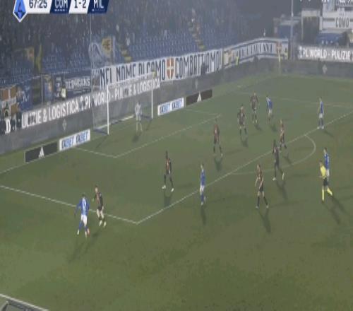 科莫一记斜传打向米兰的左路,靠着锋线两点压制米兰后卫,右后卫范德布雷普特拿球长驱直入畅通无阻并轻松起脚,莱奥换位在左路却没有起到相应的防守作用。直到第55分钟米兰2:1完成反超,阵型全面后撤收缩后,米兰10号才真正开始防守。